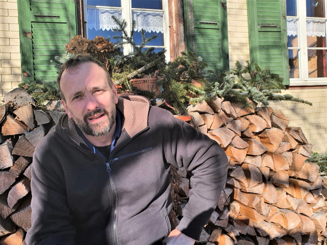 Wir treffen uns bei Urs Hirschi (48) auf seinem Bauernhof in Reutenen oberhalb von Zäziwil. Der Hof liegt etwas ausserhalb. Wir sitzen draussen an einem Tisch bei Kaffee und Güetzi. Der Schnee glänzt weiss von den umliegenden Hügeln, die Sonne scheint. Hier oben ist die Welt noch in Ordnung.