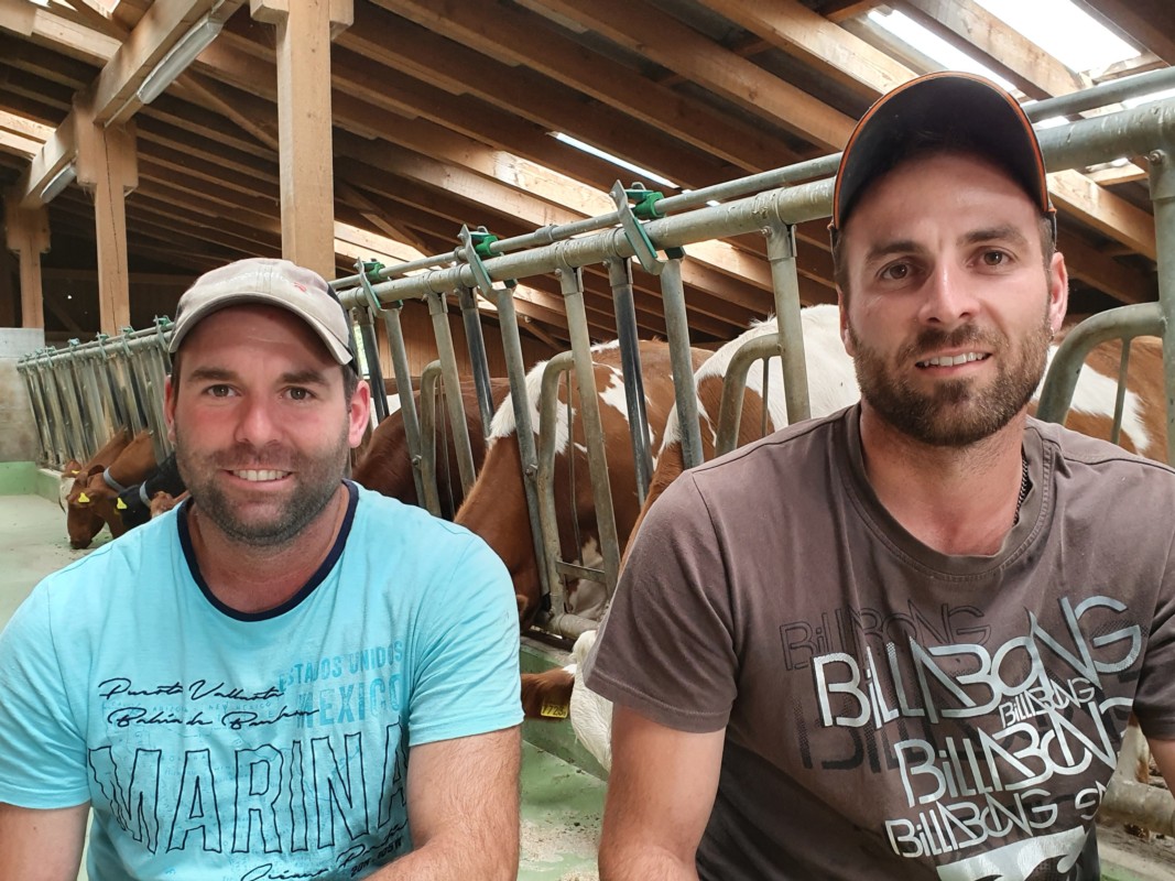 Michael und Remo Bärtschi führen den Hof seit acht Jahren zusammen mit ihrer Mutter. Bereits ihr Vater hatte sich intensiv mit der Zucht von Swiss-Fleckvieh-Kühen beschäftigt. Die beiden Brüder setzen diese Tradition fort.