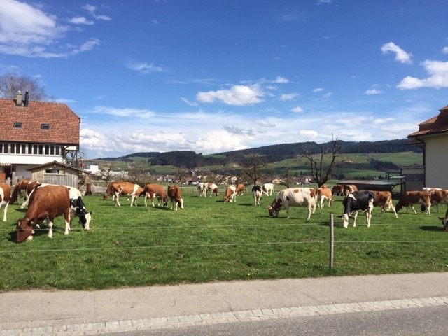 [i] Familie Bärtschi in Ursellen bewirtschaftet 34 Hektaren. Sie halten 40 Milchkühe und 50 Guschti und Kälber. Dazu bauen sie noch Gerste, Weizen, Silomais und Ur-Dinkel an.