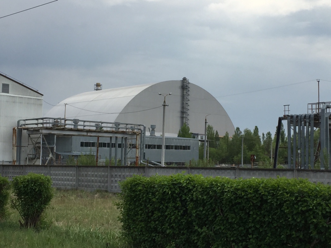 Nach der Besichtigung der Geisterstadt wurden wir weiter zum Reaktor 4 geführt. Erstaunlich nahe konnten wir den neuen Sarkophag besichtigen. Fertiggestellt wurde der Neubau erst im Februar 2017. Budgetiert war er mit rund 500 Millionen Euro, gekostet haben soll er rund 2.2 Milliarden. Diese Kosten wurden unter anderem auch durch Spenden aus der EU und den umliegenden Ländern übernommen.