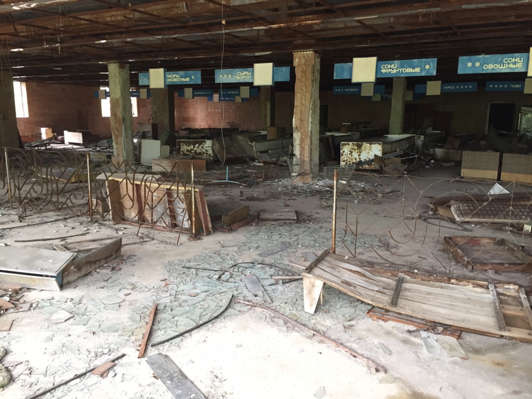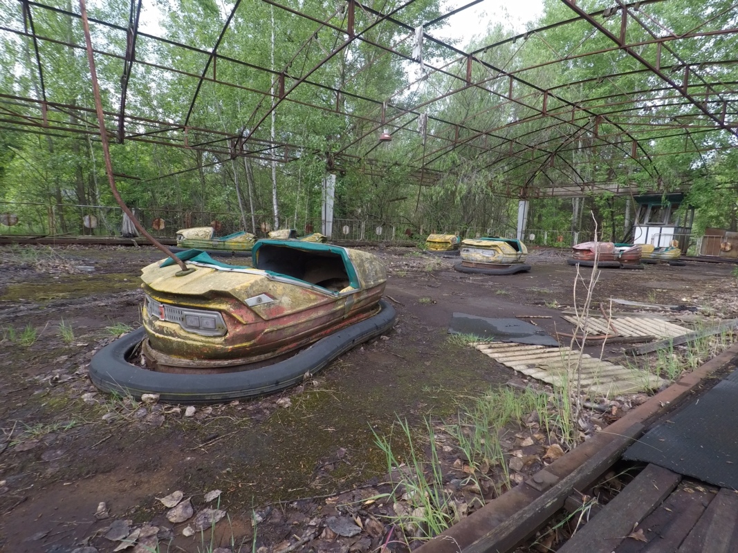 Ein Funpark mit Riesenrad und Putschauto sollte ein Tag nach der Katastrophe eröffnet werden. In Gedanken an die Leute, die hier innert wenigen Stunden alles verloren und vor dem unsichtbaren Gift flohen, sahen wir uns die Bibliothek, das Schwimmbad, den Busbahnhof und etliche andere Gebäude an, welche zum Teil schon stark eingestürzt und verlebt zum Vorschein kamen.