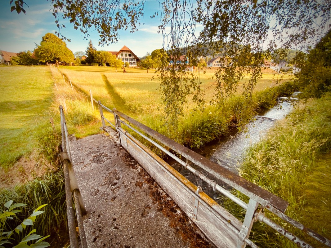 In Boll-Sinneringen, zwischen den Quartieren Ausserhaus und Moosgasse liegt ein Fussweg. Er führt über Landwirtschaftsland und überquert den Lindentalbach. Seit über 100 Jahren* gilt ein allgemeines Wegrecht. Damit darf die Öffentlichkeit den Weg nutzen und die Gemeinde Vechigen ist für den Unterhalt zuständig.