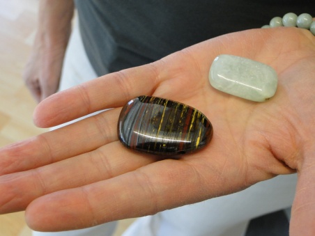 Etwas feinstofflicher wird es bei den Edelsteinen. Verena Sutter betont: "Steine lösen kein Problem. Aber sie haben eine bestimmte Energie. Und man lädt sie auch selber auf mit seinen Gedanken." Gegen die Frühjahrsmüdigkeit empfiehlt sie Tigereisen und Prehnit: "Tigereisen hilft, wenn man ausgelaugt ist. Prehnit soll entgiften und den Fett-Stoffwechsel anregen." Auch das natürlich ein Dauerbrenner, wenn frau langsam an die Bikini-Saison zu denken beginnt. Einen solchen Stein kann man sich neben das Bett oder auf den Schreibtisch legen oder ihn in der Hosentasche mit sich herumtragen.
