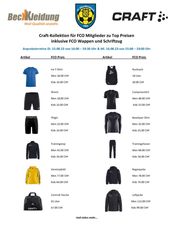 Verkaufstage FC Oberdiessbach & BeckKleidung