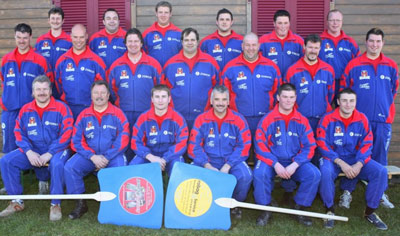 Versuchen sich im Hornussen: Die acht Finalistinnen der Miss BERN-OST Wahl vom 17. Mai 2008 (Bild: Res Reinhard)