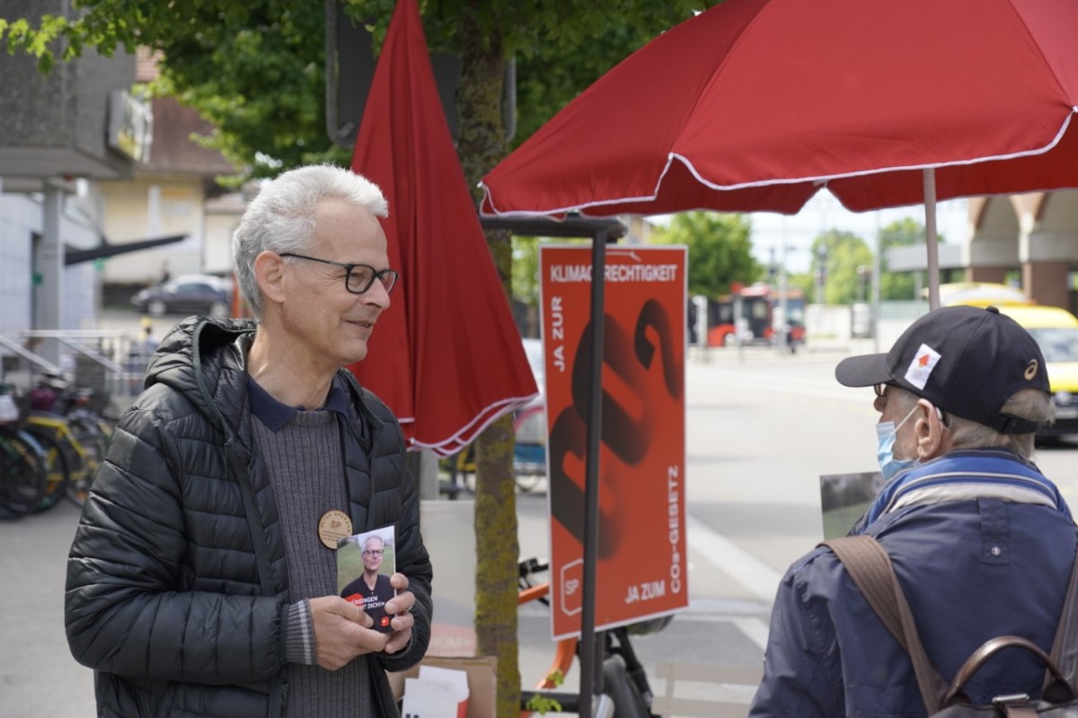 Die SP Münsingen und ihr Präsidiumskandidat Peter Baumann gingen mit einem Glacé-Velo auf die Strasse. Sie verteilten Passant:innen, passend zum schönen Wetter, ein kühles Glacé.