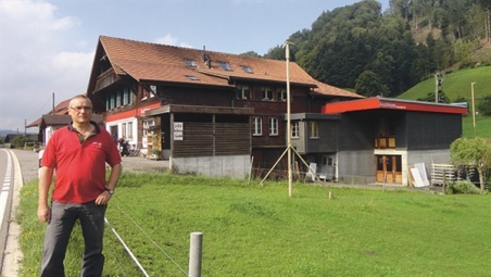 Direkt an der Hauptstrasse liegt die Schreinerei Aeschlimann, begrenzt durch Bach, Kantonsstrasse und Landwirtschaftszone. «Der Platz wurde wirklich langsam zum Problem», erzählt Betriebsinhaber Kurt Aeschlimann. «Die Produktionsabläufe funktionieren in den bestehenden Räumlichkeiten nicht optimal. Dazu kommen immer grössere Maschinen auf den Markt, die wir gar nicht mehr aufstellen könnten.» Nachdem im März 2012 Schwiegersohn Stefan Flückiger in den Betrieb einstieg und nun die Nachfolge geregelt werden konnte, suchte man intensiv nach Lösungen. «Der Standort zwischen Bern, Thun und Langnau schien uns aber nach wie vor ideal.» Deshalb prüften die Aeschlimanns eine Erweiterung der heutigen Schreinerei.
