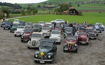 Der Treffpunkt und zugleich Start für den Ausflug wurde auf dem Schallenberg festgelegt. Nach einem reichhaltigen Brunch machten wir uns dann auf die Reise kreuz und quer durchs Emmental (Raum Eggiwil, Röthenbach, Heimenschwanden, Freimettigen, Oberhünigen, Bowil und zuletzt noch ins Bigental), wo wir nach rund 100 km mit unseren zum Teil über 60 Jahre alten Fiat-Topolino glücklich und unfallfrei im Metzgerhüsi zum Zvieri angelangt sind."