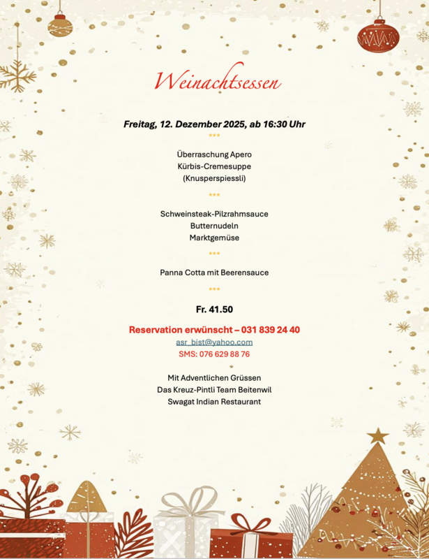 Weihnachtsessen im Kreuz Pintli