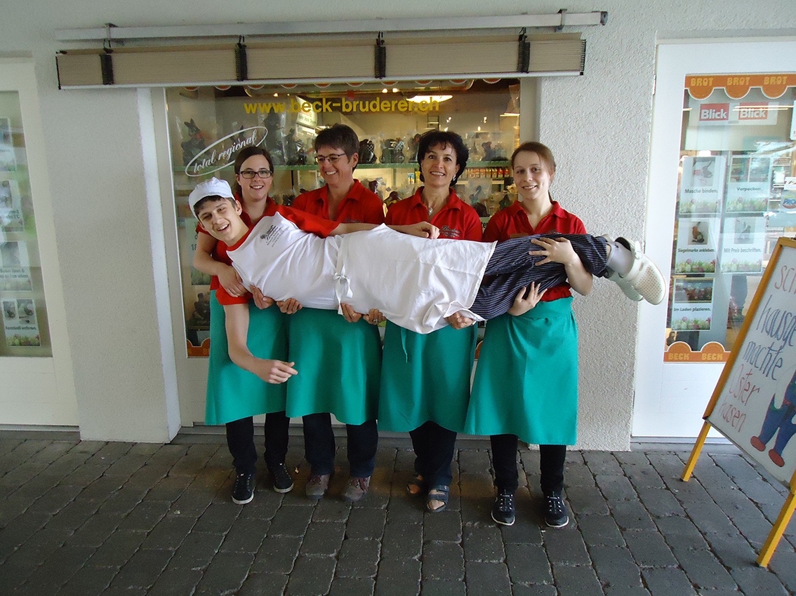 Mitgemacht bei dieser Aktion hat auch die Bäckerei Bruderer aus Wichtrach. Tobias Geissbühler, Lernender im 2. Lehrjahr, reichte ein Bild ein, das ihn gemeinsam mit den Verkäuferinnen der Bäckerei zeigt.