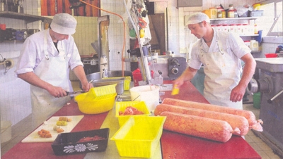 Der Dienstag und der Freitag gehören der Wurst. 100 Kilogramm produziert Nussbaum mit seinen 16 Angestellten wöchentlich. Im Winter ists noch die Hälfte davon. Die Schweizer lieben es, am 1.August eine Bratwurst auf den Grill zu schmeissen (siehe Kasten). Sie sei fast noch prominenter als die Cervelat, weiss Nussbaum, da in verschiedensten Variationen erhältlich. Da gibt es neben den Klassikern wie Kalbs- und Schweinsbratwurst die auf den Namen «Feuerteufel» getauften Grillschnecken oder saisonale Kreationen wie die «Toscana» mit getrockneten Tomaten oder Bärlauch- und Currywürste.