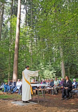 Die Kirchgemeinde hält an ihrer Sommertradition fest und verlegt die Predigt bei schönem Wetter in den Wald. Sinnigerweise heisst dieser Predigtwald.