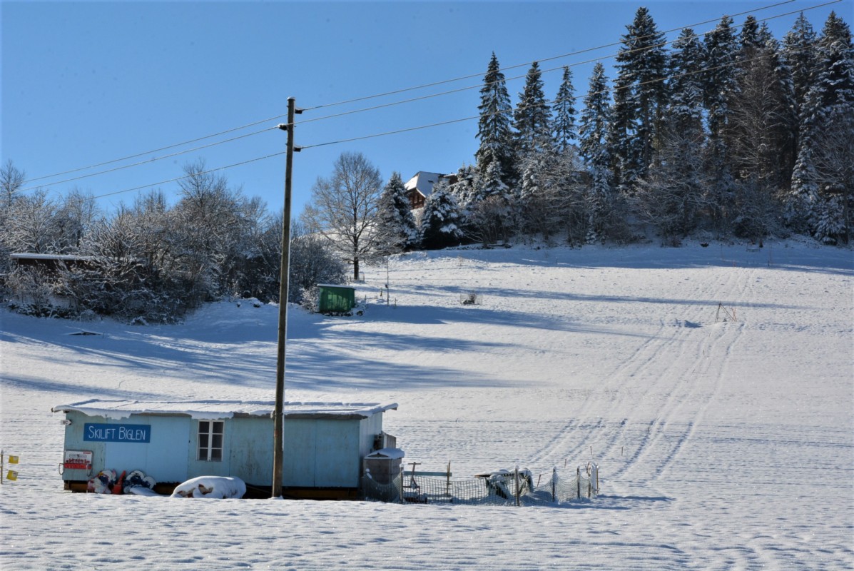 Auch im Oberfeld in Biglen hat es einen Skilift. Der Kinderlift in Biglen wurde bereits im Dezember installiert und war letztmals vor Corona in Betrieb. Am Donnerstagabend wurde versucht eine Piste zu präparieren. Am Freitagmorgen schreibt Skiliftbetreiber Stefan Hofer: "Leider hat es zu wenig Schnee beim Skilift Biglen, darum können wir am Wochenende nicht öffnen."