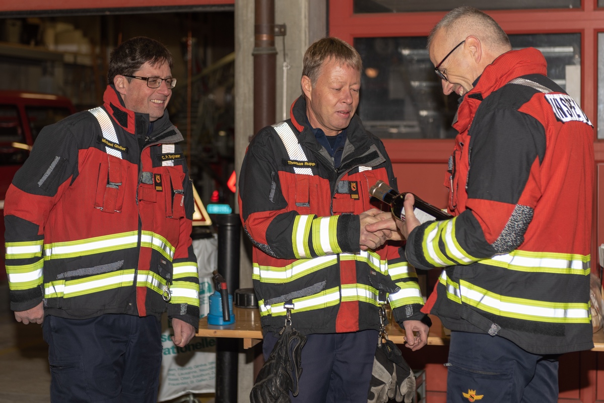 Adrian Kämpfer wurde mit dem feierlichen Anlass überrascht und konnte laut Mitteilung der Feuerwehr Worb seine Einsatzbereitschaft bereits ein erstes Mal unter Beweis stellen: Kurz vor 19 Uhr wurde er mit einer ordentlichen Alarmmeldung zu einem supponierten Containerbrand hinter dem Feuerwehrmagazin Worb aufgeboten und machte sich unverzüglich auf den Weg.