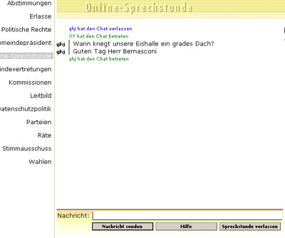 [i] Internet: www.worb.ch -> Politik -> Online-Sprechstunde. Die Funktion kann bereits getestet werden.