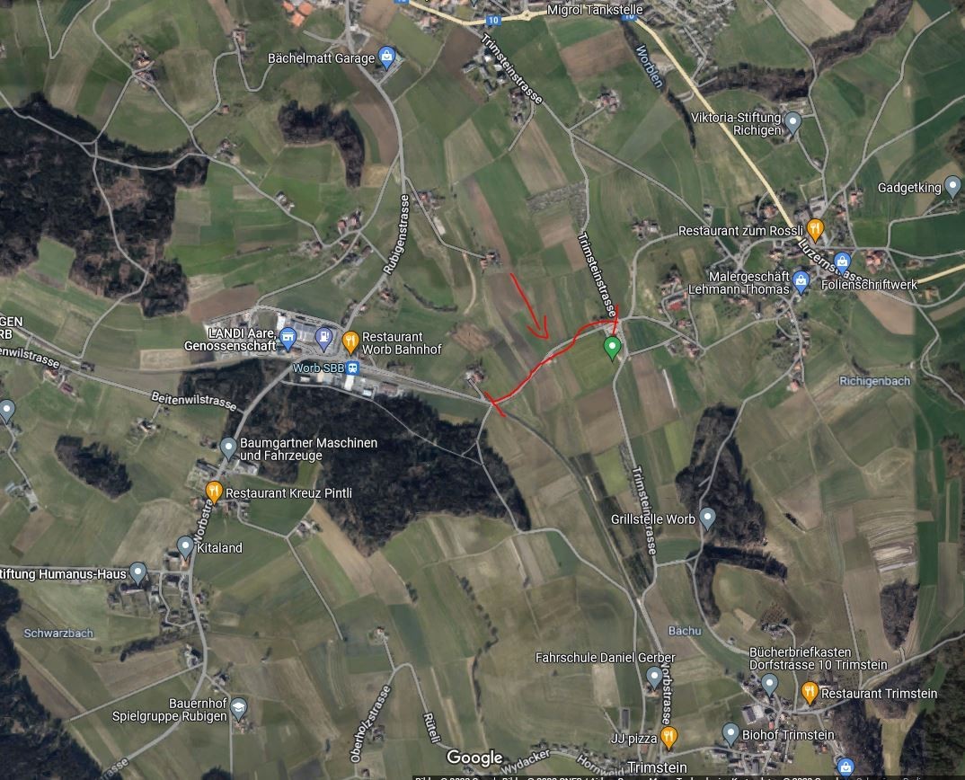 Es geht um ein kleines Strässchen, welches sich in schlechtem Zustand befindet. Leute von Trimstein, Worb und Richigen nutzten die Stationsstrasse als Abkürzung, um nach Worb SBB zu fahren. Morgens führt der Strom in die eine, abends in die Gegenrichtung.