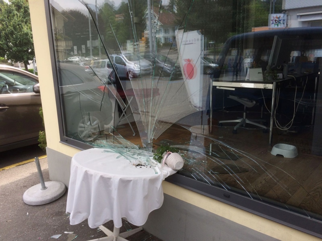 Der Lieferwagen rollte in der Folge selbständig über die Strasse - via Gästetisch direkt ins Schaufenster von BERN-OST.