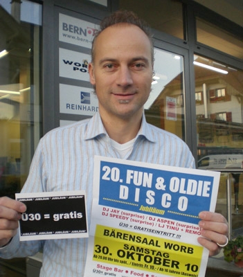 Jetzt steht erst mal – nach genau zehn Jahren – die 20. Fun & Oldie Disco an, am nächsten Samstag: „Bis spät…“ steht auf dem Flyer. In dieser Nacht steht der Wechsel zur Winterzeit an. „Das ist ein alter Veranstaltertrick“, sagt This Neuenschwander, „so können wir eine Stunde länger festen.“