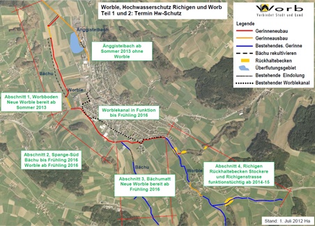 Stephan Hauri: „Ab Sommer 2013 wird die Worble gemeinsam mit dem Bächu entlang der Lauigasse talauswärts fliessen; gleichzeitig wird der Änggisteibach entlang der Bollstrasse von der Worble entlastet.“