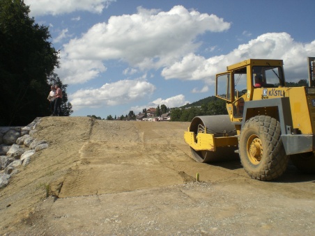 In der Stockere oberhalb von Richigen ist der Damm für das erste Rückhaltebecken der von Schlosswil her kommenden Worble im Rohbau fertig. Das Rückhaltebecken wird 15‘000 Kubikmeter Wasser fassen können. Die gegenwärtige Setzungsphase ist für die Stabilität des Dammes wichtig, über den das neue Strässchen führt.