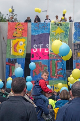 Auch der Minizug, der auf der neuen Strecke der Umfahrungsstrasse hin- und hergondelt, wird rege genutzt. Dafür nehmen die Besucher das Schlangestehen im Nieselregen in Kauf. Eine der Passagierinnen ist Elisabeth Blaser aus Rüfenacht. «Man muss ja kein Kind mehr sein, um hier mitzufahren und Spass zu haben», findet sie. Gespannt schaut sie sich das Ganze an. «Als meine Kinder hier zur Schule gegangen sind, sah alles noch ganz anders aus.» Während der Bauphase sei sie von den riesigen aufgeschütteten Sandhügeln beeindruckt gewesen. «Und jetzt, wo alles fertiggestellt ist, schauen wir mal, wie es mit dem Verkehr im Dorf weitergeht», sagt sie schmunzelnd.