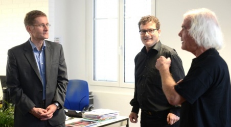 Fachkundig, interessiert, geistreich und locker stattete der ehemalige Journalist und jetzige Regierungsmann dem Medien-Center-Team einen zweistündigen Besuch ab. Begleitet wurde er vom Verwaltungsrat der Genossenschaft EvK, der Trägerin des Internetportals BERN-OST.