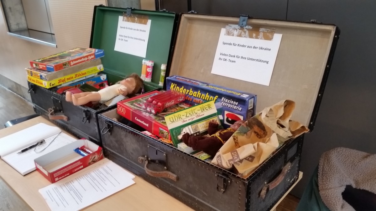 Da dabei immer auch Sachen übrigbleiben, liessen sich die Organisatoren Matthias Kupferschmid und Daniel Wegmüller etwas besonderes einfallen. Sie riefen die Aussteller:innen dazu auf, Spielsachen zu spenden für geflüchtete Kinder aus der Ukraine. Jede:r Spender:in erhielt als Dank ein Schoggistängeli.