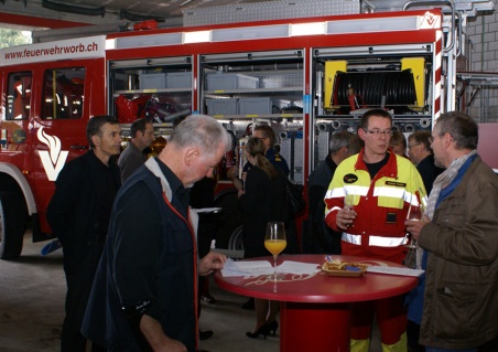 Am Mittwoch mussten die Feuerwehrleute in Worb ihre Fahrzeuge umparkieren und Platz machen für eine grosse Gästeschar. Rund 50 Mitglieder des Gewerbevereins Worb kamen zum Gewerbeapéro im Feuerwehrmagazin. Beat Pfister, Worber Feuerwehrkommandant, informierte die Anwesendes über Aktuelles aus der Feuerwehr: Kennzahlen, Einsätze, Ausbildung und die organisatorischen Zusammenhänge. Er wies insbesondere darauf hin, dass in vielen Feuerwehren Engpässe bestehen beim Personalstand.