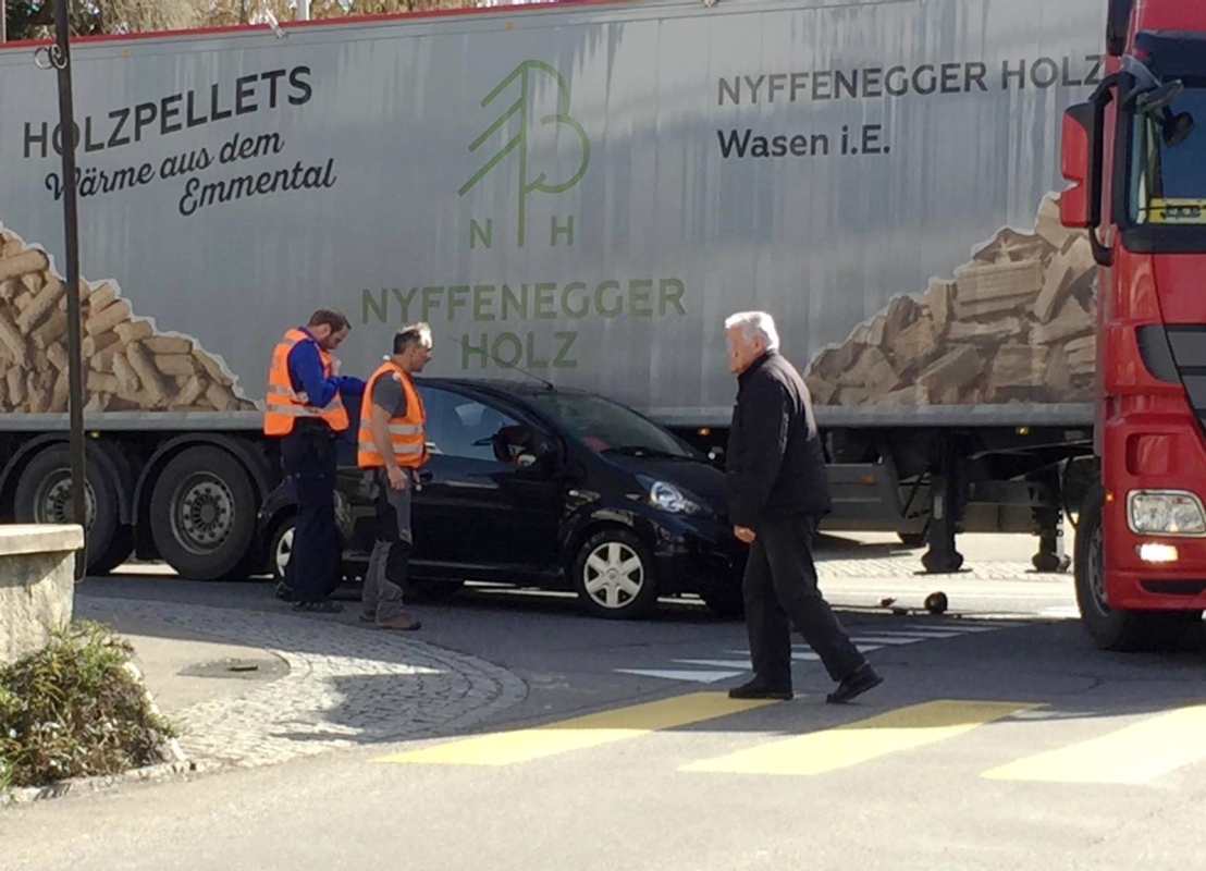 Sowohl der Sattelschlepper als auch der Kleinwagen wollten auf der Löwenkreuzung - von Enggistein her kommend - rechts abbiegen. "Aus noch zu klärenden Gründen kam es dann zur Kollision", sagte Ramona Mock, Mediensprecherin der Kantonspolizei Bern, gegenüber BERN-OST.