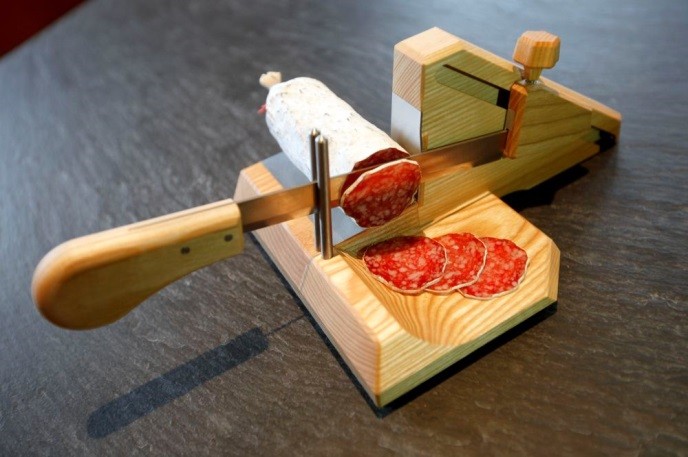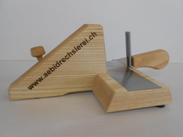 Dieser neuartige Wurstschneider eignet sich hervorragend zum Schneiden von Würsten, Käse, Speck, oder Trockenfleisch aller Art. Dank des ziehenden Schnitts schneiden Sie mühelos bis 5 cm Durchmesser. Die kleinen Abmessungen erlauben es, das Wurstholz am Tisch zu benutzen. Das moderne Design mit den Chromstahl-Einlagen ist sehr hygienisch und gut zu reinigen. Das Qualitätsmesser kann zu Reinigungszwecken blitzschnell entfernt werden. Die Herstellung dieses patentierten Wurstschneiders erfolgt auf modernsten Maschinen ausschliesslich mit Schweizer Holz. Praktisch einfache Bedienung. Professionelle Bearbeitung Hygienisch, gut zu reinigen Etwas das Ihr Nachbar (noch) nicht hat.!)Ein Schweizer Produkt mit speziellem Logo Ihrer Firma, oder zum Geburtstag, Hochzeit usw.