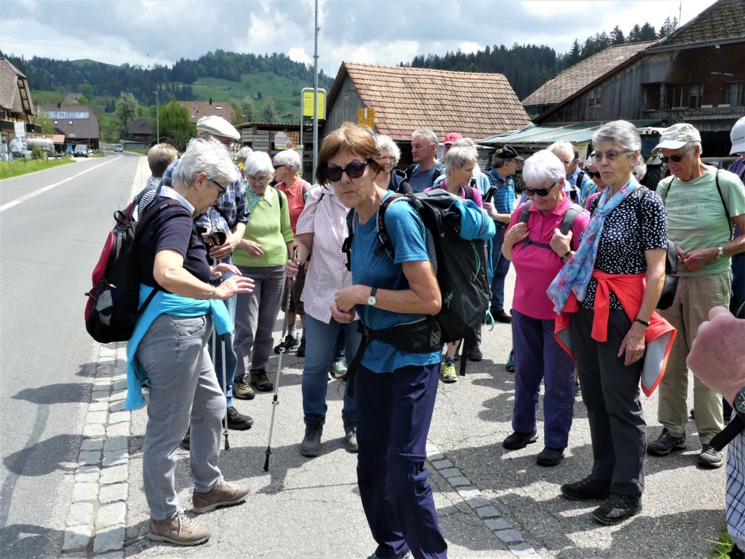 Nach der Bahnfahrt stiegen die ZAK-Wandernden in Thun in den Bus um. Im Kreuzweg Unterlangenegg mussten die Konolfinger nochmal den Bus bis Süderen wechseln. Ab Süderen gings für die grössere Gruppe mit der Wanderleiterin Eliane Gassmann zu Fuss weiter. Die kleinere Gruppe mit Fritz Rentsch liess sich bis Neuhaus chauffieren und trat von da die Wanderung Richtung Heimenschwand an.