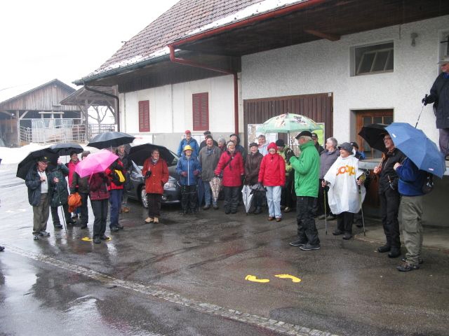 Trotz Dauerregen liessen sich die Teilnehmenden nicht davon abhalten zum oberen Stalden, mit dem ehemaligen Feuerwehrmagazin, der Milchannahmestelle, den „währschaften“ Bauernhäusern wie dem „Tannhof“ (Bauernhof Liechti), und vorbei am alten Schulhaus zum heutigen Schulhaus zu wandern.