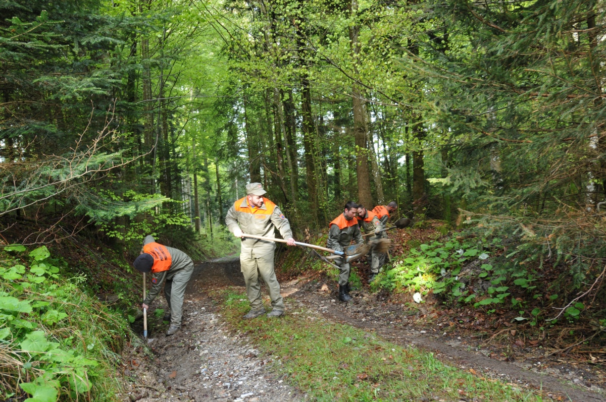 Die Pioniere waren in Gruppen im ganzen Raum Kiesental im Einsatz und übten den Umgang der Gerätschaften im praktischen Einsatz. Dabei wurden Wanderwege in Stand gestellt sowie Bäche gereinigt und verbaut. Zudem wurden grosse Waldflächen, in welchen im Auftrag des Kantons und der Gemeinden Holz geschlagen wurde, geräumt.