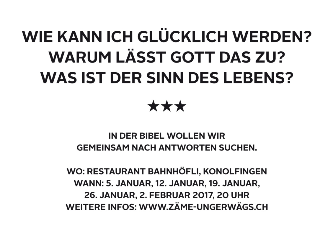 Weitere Infos: www.zäme-ungerwägs.ch