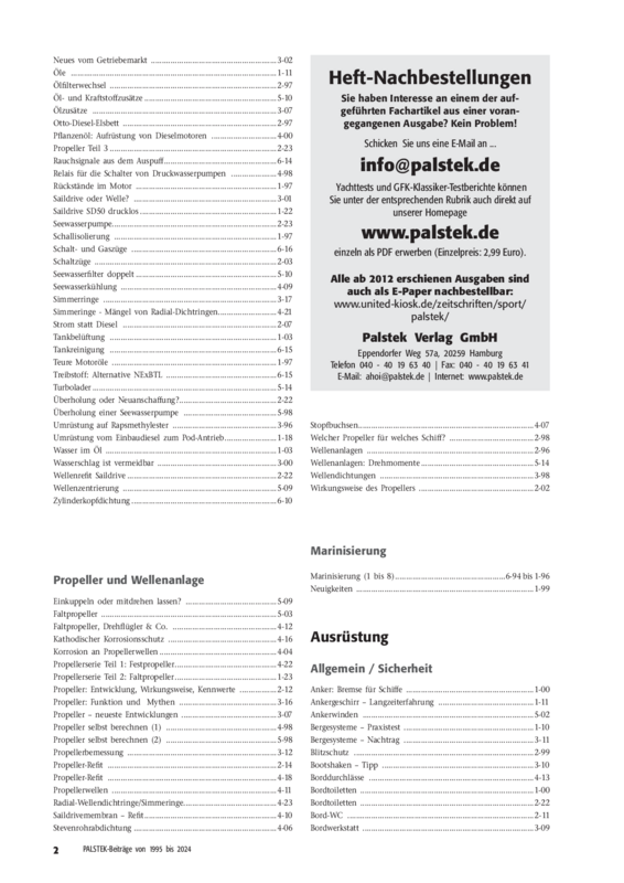Vollständige Sammlung des Technischen Magazin für Segler "Palstek".
