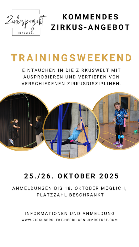 Am Wochenende vom 25./26. Oktober 2025 kannst du in Herbligen in die Zirkuswelt eintauchen und verschiedene Zirkusdisziplinen ausprobieren