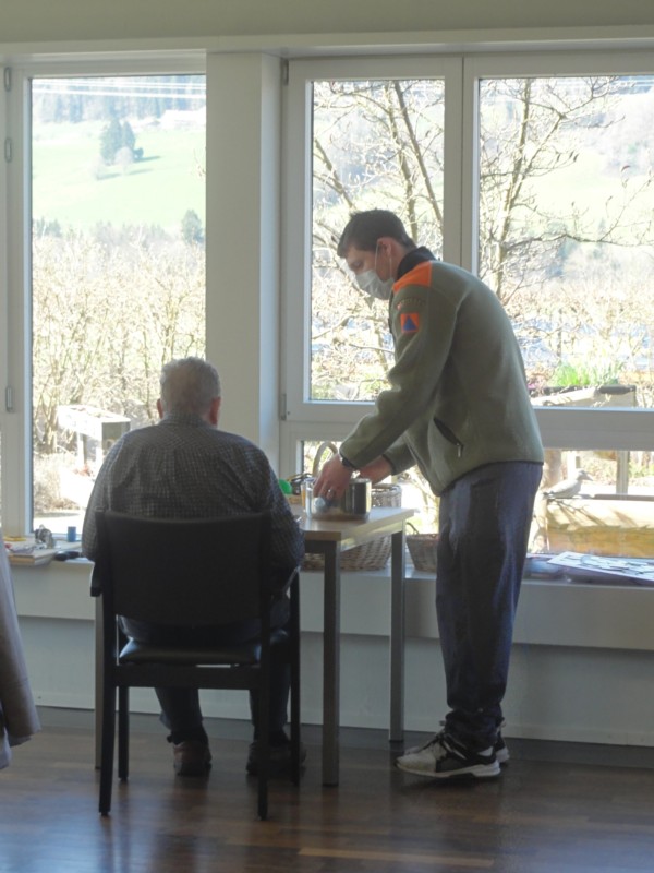 Im Dezember ging die Anfrage von Marie-Louise Jordi Anderegg, Geschäftsführerin der Alterssitz Neuhaus Aaretal AG (ANA AG), bei der ZSO ein. Es ging um einen Einsatz im Umfang von zehn Wochen. Während den laufenden Renovationsarbeiten Anfang diesen Jahres sollte das Pflegepersonal bei der Betreuung der Bewohnerinnen und Bewohner unterstützt werden. Jeweils zwei oder drei Zivilschützer pro Woche leisteten ihren Dienst.