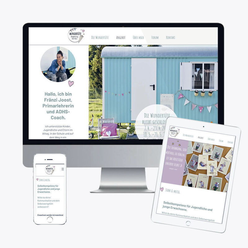 Vom Erstgespräch bis zur Onlineschaltung begleite ich Ihre Website hinsichtlich: Seitenstruktur, Funktionalität, Design, Text- und Bild (Content), User-Experience (Benutzerfreundlichkeit), Suchmaschinen Optimierung (SEO) sowie Kosten- und Zeitmanagement.